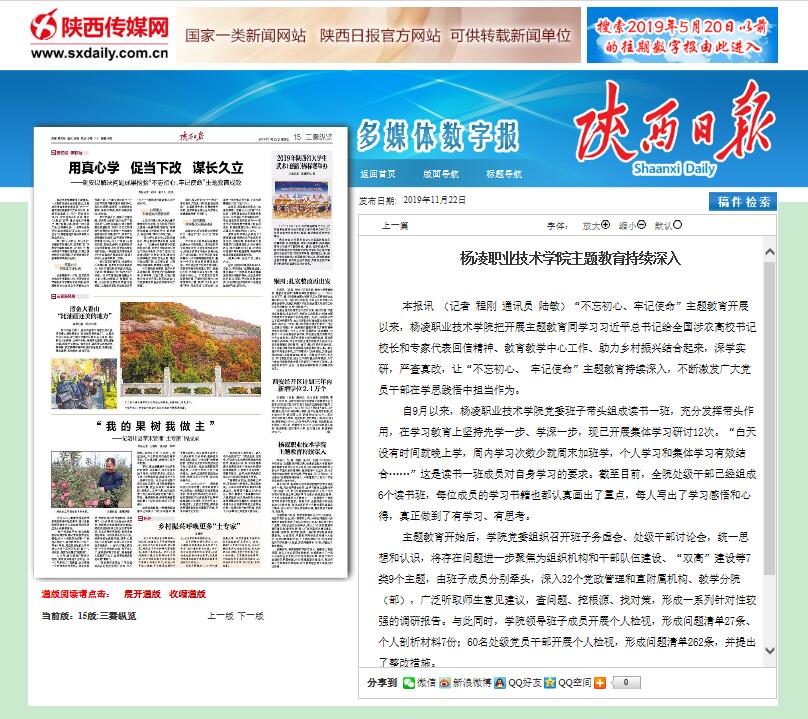 【陕西日报】杨凌职业技术学院主题教育持续深入