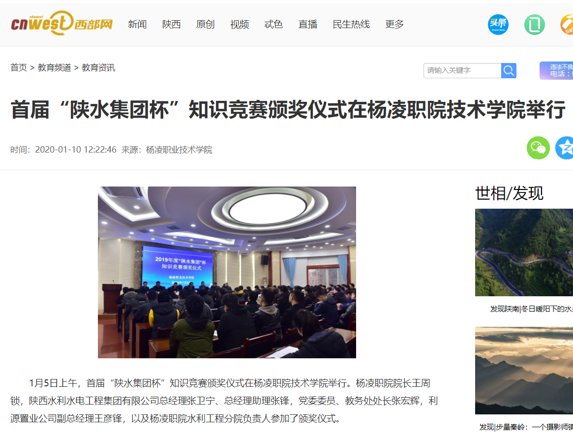【西部网】首届“陕水集团杯”知识竞赛颁奖仪式在杨凌职院技术学院举行