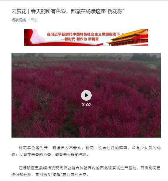 记者了解到,这座桃花园其实是座“桃花源”,南方北方众多公园、植物园中的观赏桃花都源自这里,春天里,杨凌科技在全国绽放出醉人色彩。