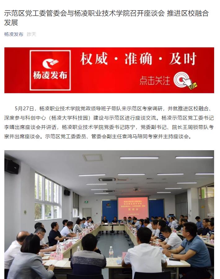 【杨凌发布】示范区党工委管委会与杨凌职业技术学院召开座谈会 推进区校融合发展