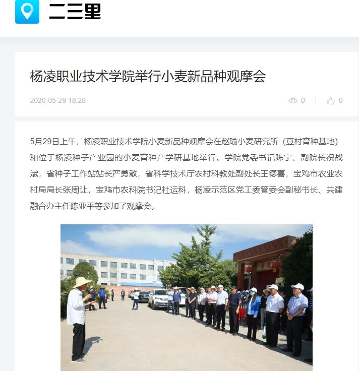 【二三里】杨凌职业技术学院举行小麦新品种观摩会