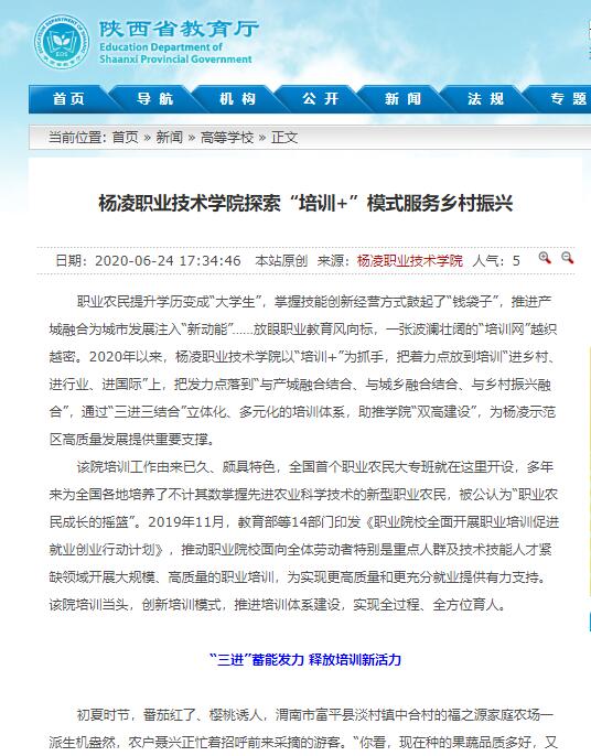 【陕西省教育厅】杨凌职业技术学院探索“培训+”模式服务乡村振兴