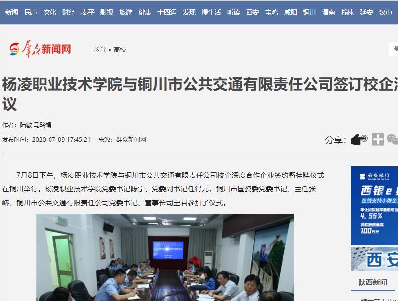 【群众新闻网】杨凌职业技术学院与铜川市公共交通有限责任公司签订校企深度合作协议