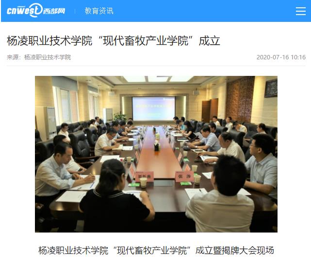 【西部网】杨凌职业技术学院“现代畜牧产业学院”成立