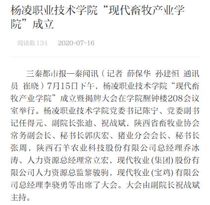 【三秦都市报】杨凌职业技术学院“现代畜牧产业学院”成立