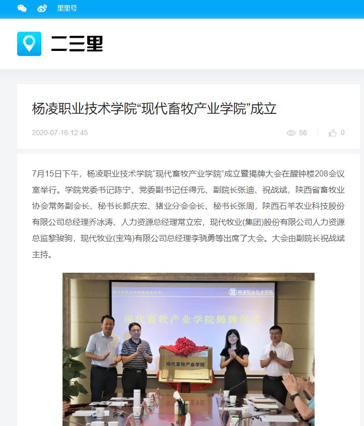 【二三里】杨凌职业技术学院“现代畜牧产业学院”成立