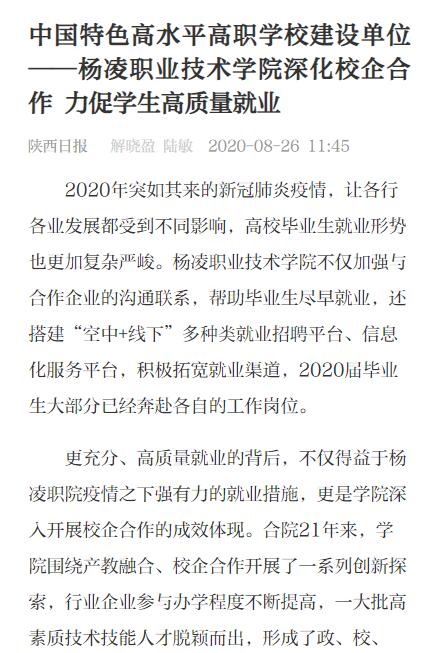 【群众新闻网】杨凌职业技术学院:深化校企合作 力促学生高质量就业