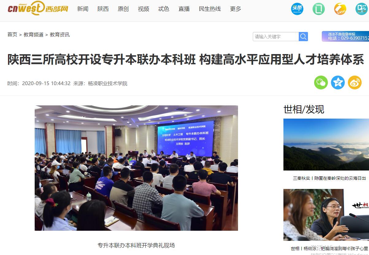 9月14日上午,渭南师范学院、榆林学院、杨凌职业技术学院2020级生物科学、土木工程专业专升本联办本科班开学典礼在best365足球官网水韵楼报告厅举行。best365足球官网院长王周锁、榆林学院副院长张晓、渭南师范学院副校长王菊霞出席开学典礼。典礼由杨凌职院党委委员、教务处处长拜存有主持。