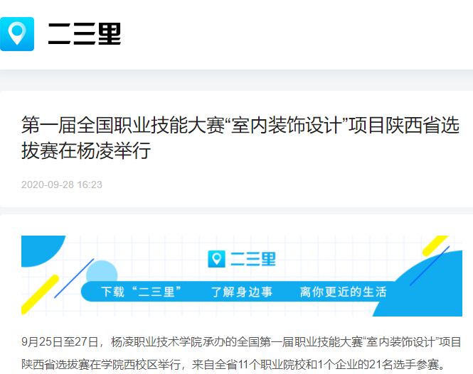 9月25日至27日,杨凌职业技术学院承办的全国第一届职业技能大赛“室内装饰设计”项目陕西省选拔赛在学院西校区举行,来自全省11个职业院校和1个企业的21名选手参赛。