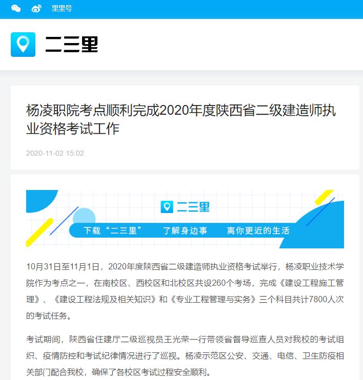 【二三里】杨凌职院考点顺利完成2020年度陕西省二级建造师执业资格考试工作