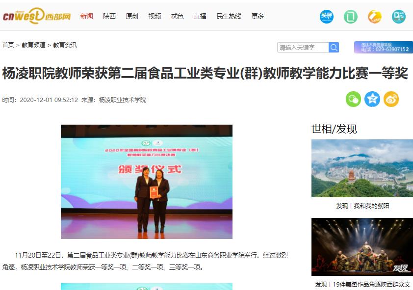 【西部网】杨凌职院教师荣获第二届食品工业类专业(群)教师教学能力比赛一等奖
