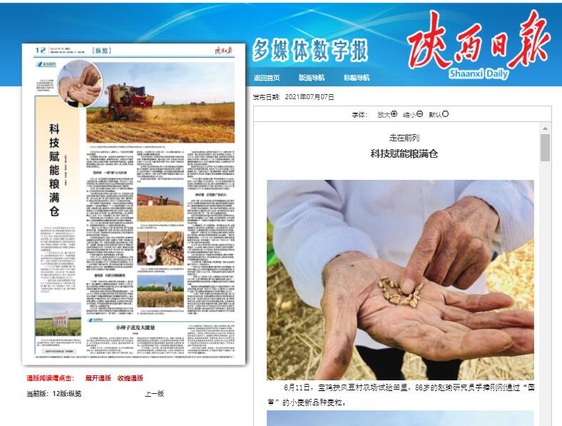 6月9日,农业农村部发布2021年小麦品种审定公告,陕西省通过审定的小麦新品种共有7个,杨凌示范区独占6个。“十三五”以来,杨凌示范区持续加快种业自主创新,进一步落实“藏粮于地、藏粮于技”战略,聚焦黄淮麦区小麦新品种试验示范,育良种、推良技、种好粮,一条用现代科技赋能国家粮食安全的道路正朝着未来清晰铺展。