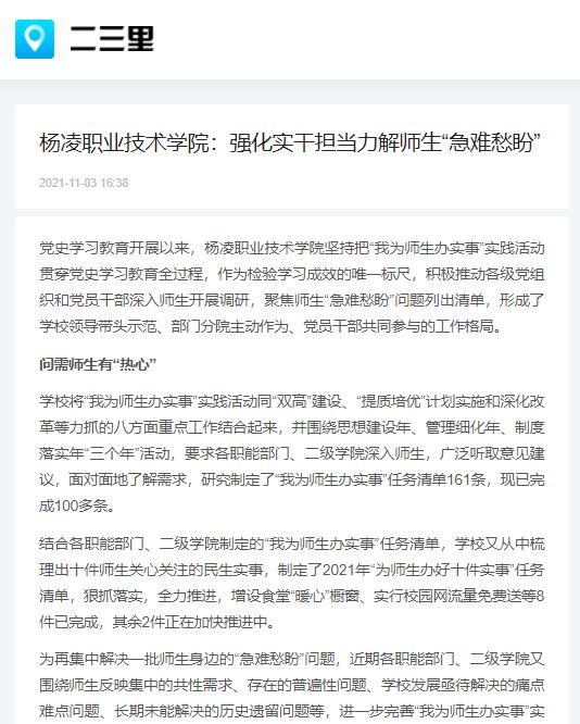 【二三里】杨凌职业技术学院强化实干担当 力解师生“急难愁盼”