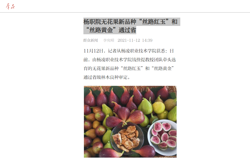 【陕西日报客户端】杨职院无花果新品种“丝路红玉”和“丝路黄金”通过省审