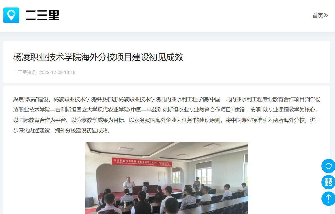 【二三里】杨凌职业技术学院海外分校项目建设初见成效