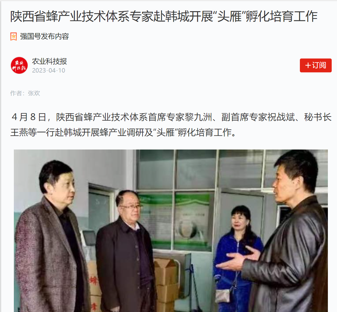 【农业科技报】陕西省蜂产业技术体系专家赴韩城开展“头雁”孵化培育工作