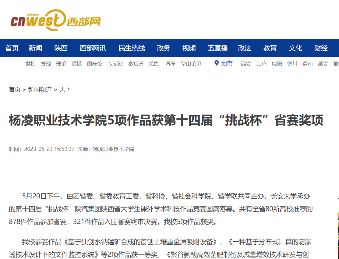 我校参赛作品《基于独创水钠锰矿合成的首创土壤重金属吸附设备》、《一种基于分布式计算的防渗透技术设计下的文件监控系统》等2项作品获一等奖,《聚谷氨酸高效菌肥制备及减量增效技术研发与创新》、《6-酮螺甾烷类化合物高效制备技术及其对果蔬提质增效和保鲜效果的研究》等2项作品获二等奖,作品《一种基于免疫分析高灵敏度快检瘦肉精方案》获三等奖。