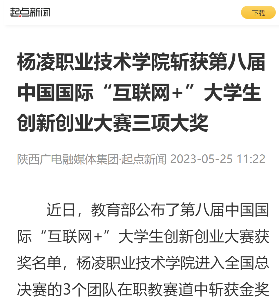 【起点新闻】杨凌职业技术学院斩获第八届中国国际“互联网+”大学生创新创业大赛三项大奖