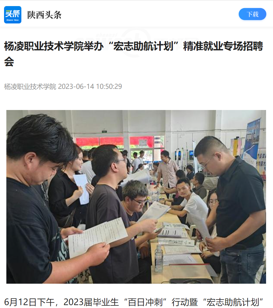 【陕西头条】杨凌职业技术学院举办“宏志助航计划”精准就业专场招聘会
