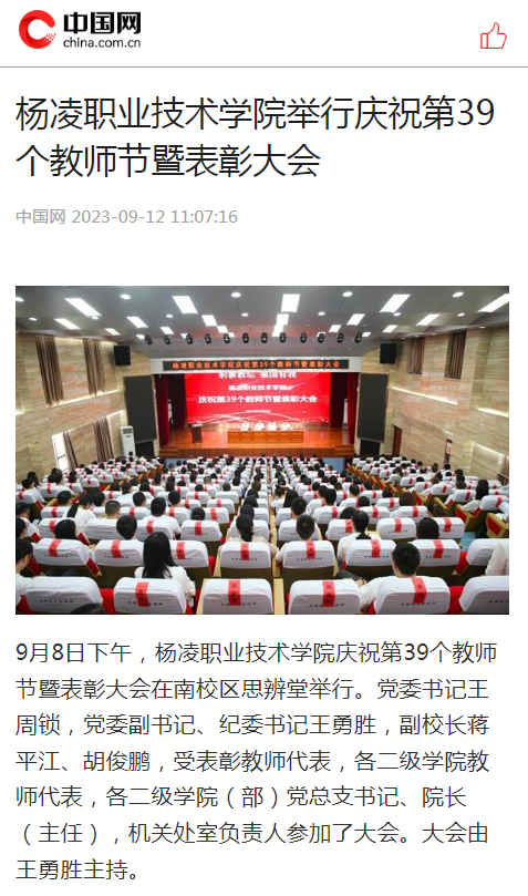 【中国网】杨凌职业技术学院举行庆祝第39个教师节暨表彰大会