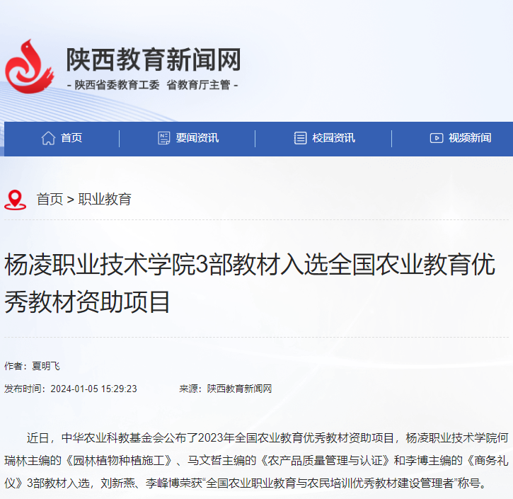 【陕西教育新闻网】杨凌职业技术学院3部教材入选全国农业教育优秀教材资助项目