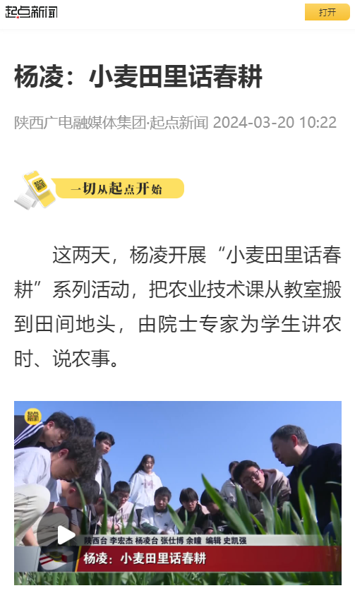 这两天,杨凌开展“小麦田里话春耕”系列活动,把农业技术课从教室搬到田间地头,由院士专家为学生讲农时、说农事。