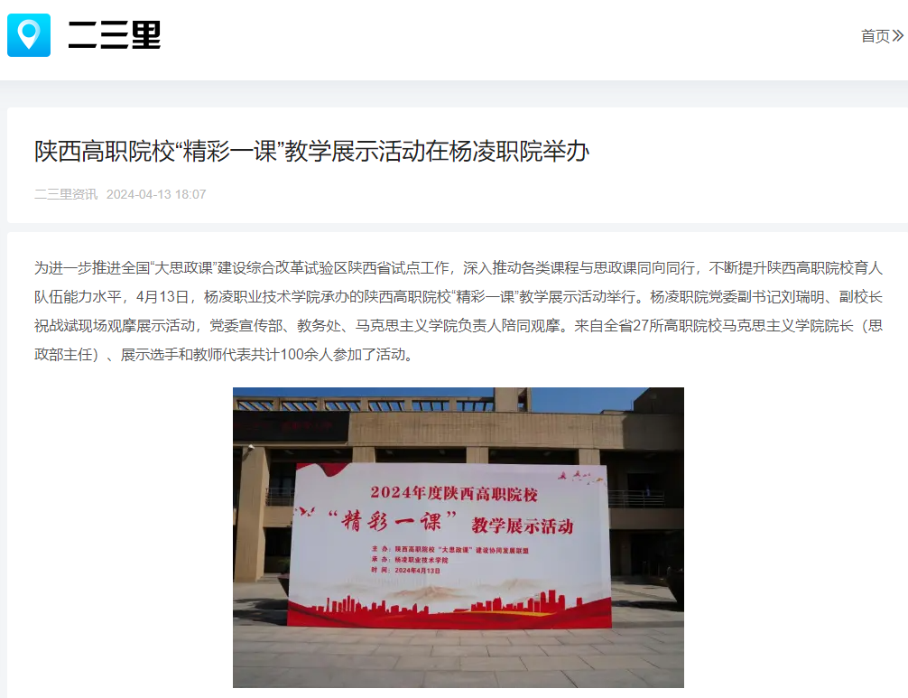 【二三里】陕西高职院校“精彩一课”教学展示活动在杨凌职院举办