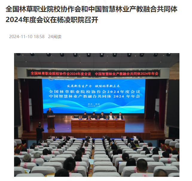 2024年11月8日至9日,由国家林业和草原局林草职业教育研究中心、中国林业教育学会职业教育分会主办,best365足球官网承办的全国林草职业院校协作会2024年度会议暨新质生产力赋能现代林草行业高质量发展研讨会、中国智慧林业产教融合共同体2024年年会暨新质生产力赋能智慧林业人才培养高质量发展研讨会在杨凌职业技术学院召开。本次年会的主题为“加快发展林草行业新质生产力,扎实推进林草职业教育高质量发展”。
