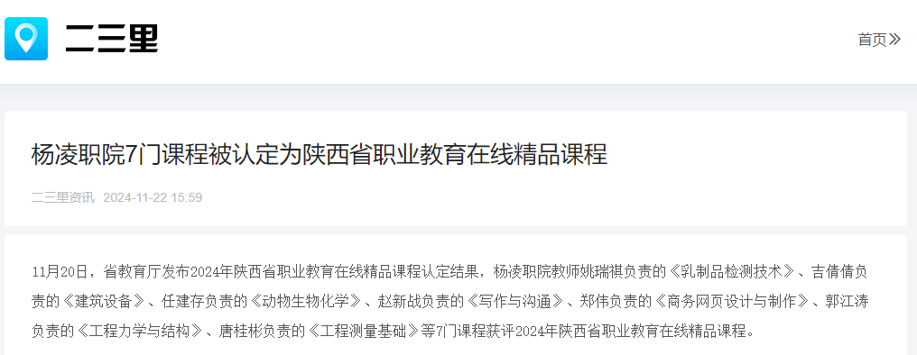 【二三里】杨凌职院7门课程被认定为陕西省职业教育在线精品课程