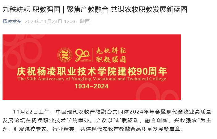 【杨凌发布】九秩耕耘 职教强国 | 聚焦产教融合 共谋农牧职教发展新蓝图