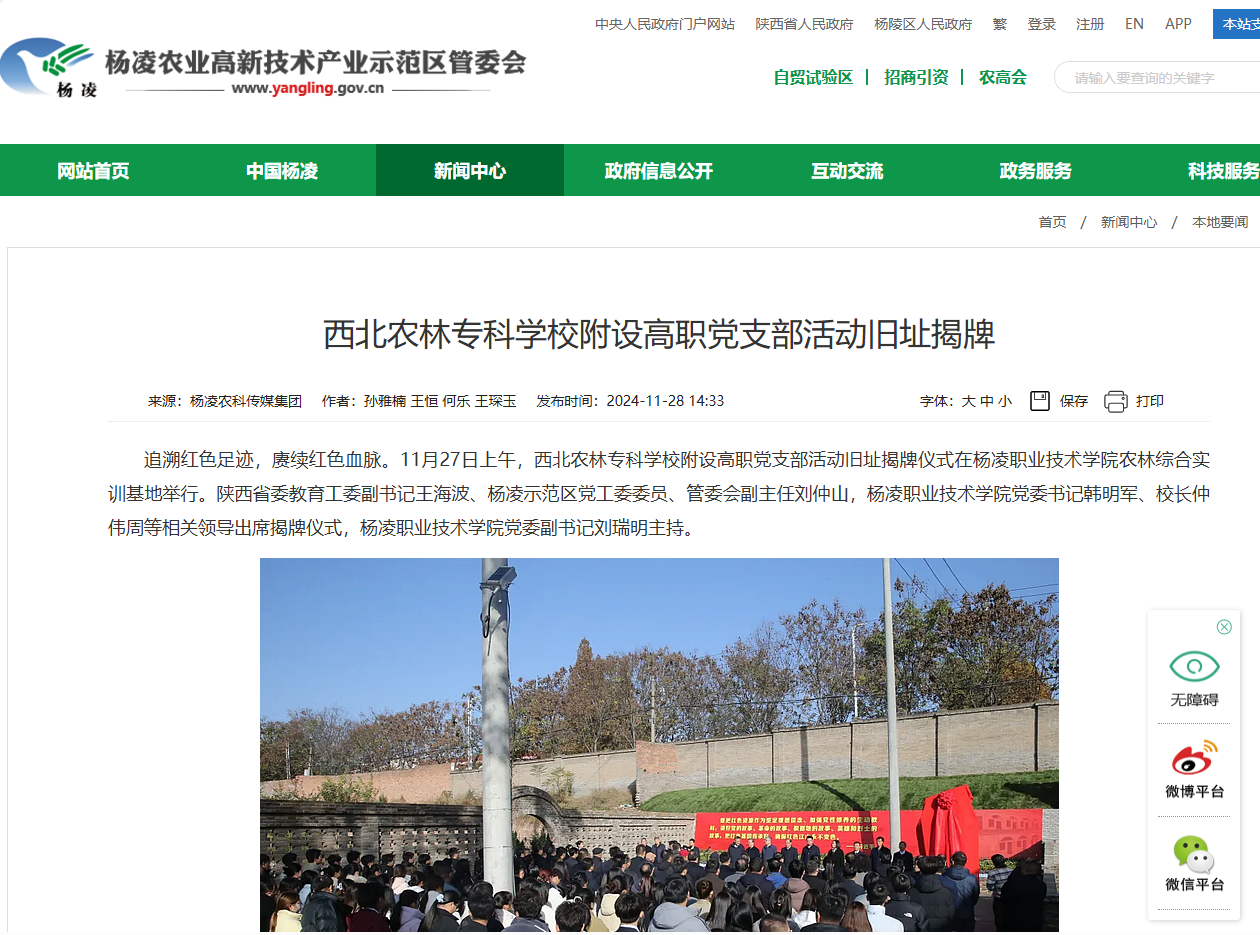 【杨凌示范区管委会】西北农林专科学校附设高职党支部活动旧址揭牌