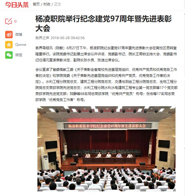 【各界导报】杨凌职院举行庆祝建党97周年暨先进表彰大会
