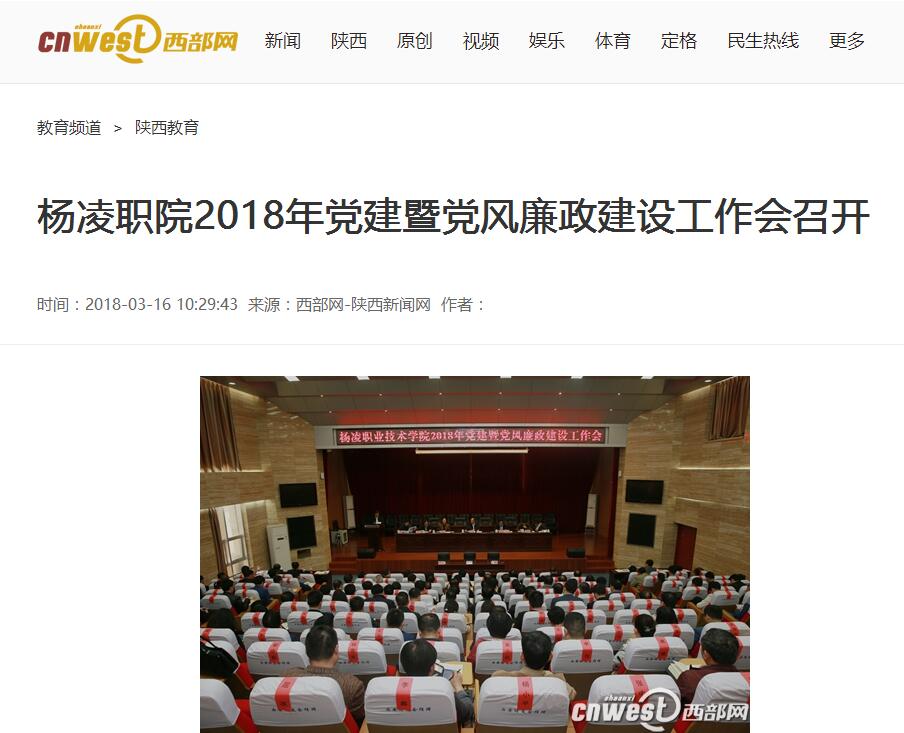 【西部网】杨凌职院2018年党建暨党风廉政建设工作会召开