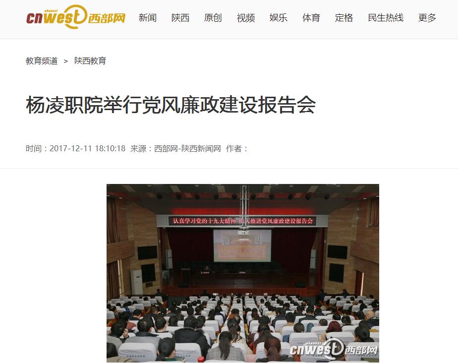 为认真贯彻落实党的十九大精神,持之以恒正风肃纪,让广大党员干部知敬畏、存戒惧、守底线,12月8日下午,杨凌职院在思辨堂举行党风廉政建设专题报告会,邀请省纪委监察厅原副厅级纪律检查员、监察专员马银录作了题为《学习党的十九大精神 做廉洁自律干部》的专题辅导。