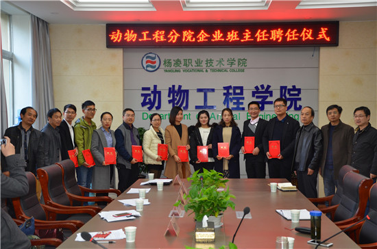 11月24日下午,杨凌职业技术学院动物工程分院在林和楼会议室举行企业班主任聘任仪式,来自新希望集团等企业的10名企业经理被聘请为企业班主任。