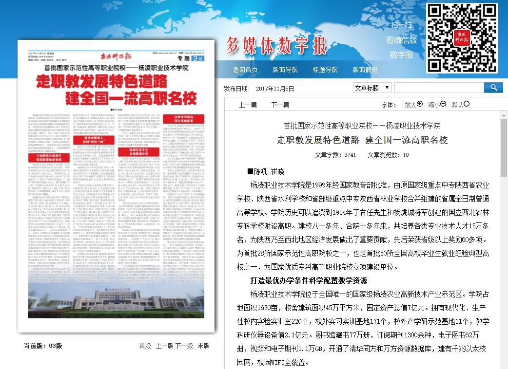 【农业科技报】走职教发展特色道路 建全国一流高职名校