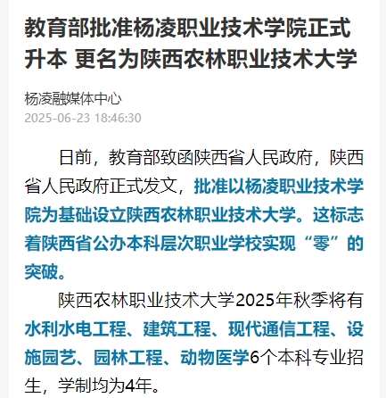 【爱杨凌】教育部批准杨凌职业技术学院正式升本 更名为best365足球官网