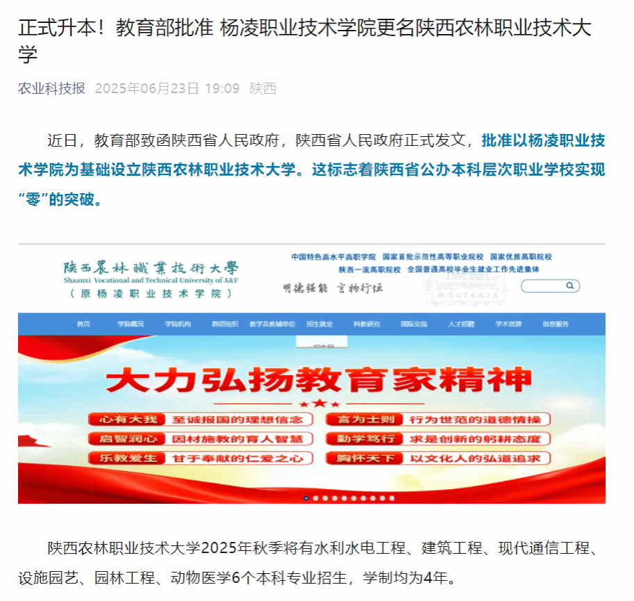 办学90多年来,best365足球官网立足办学优势和特色,始终秉承“经国本 解民生 尚科学”的办学理念,传承弘扬“后稷文化”,深化服务粮食安全、乡村振兴、生态文明、“一带一路”、西部大开发、黄河流域生态保护和高质量发展等国家重大战略及区域发展战略,已成为中国特色高水平高职学校、首批28所国家示范性高等职业院校、全国重点建设的31所示范性职业技术学院、国家技能人才培育突出贡献单位、全国乡村振兴人才培养优质校,是陕西经济社会发展和产业转型升级、杨凌示范区履行“支撑和引领干旱半干旱地区现代农业发展”国家使命的重要支撑力量。