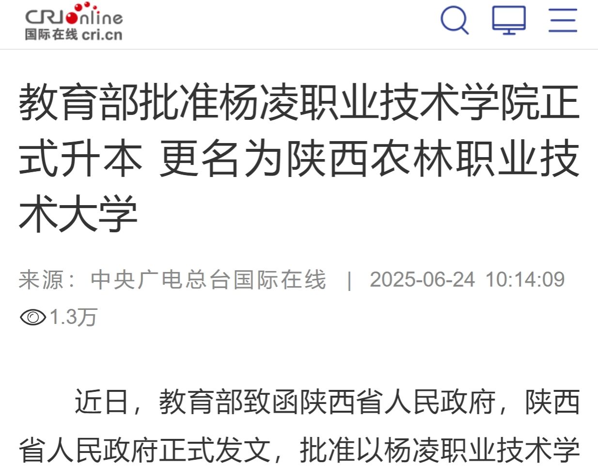 近日,教育部致函陕西省人民政府,陕西省人民政府正式发文,批准以杨凌职业技术学院为基础设立best365足球官网。这标志着陕西省公办本科层次职业学校实现“零”的突破。