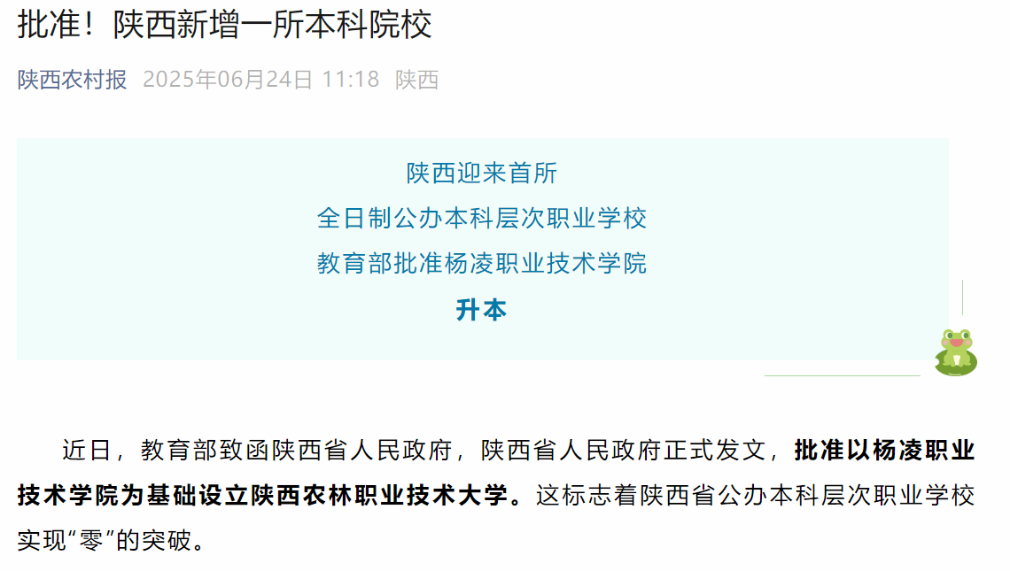 教育部批准杨凌职业技术学院