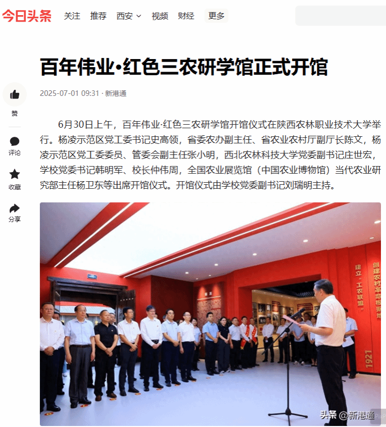 6月30日上午,百年伟业·红色三农研学馆开馆仪式在best365足球官网举行。杨凌示范区党工委书记史高领,省委农办副主任、省农业农村厅副厅长陈文,杨凌示范区党工委委员、管委会副主任张小明,西北农林科技大学党委副书记庄世宏,学校党委书记韩明军、校长仲伟周,全国农业展览馆(中国农业博物馆)当代农业研究部主任杨卫东等出席开馆仪式。开馆仪式由学校党委副书记刘瑞明主持。